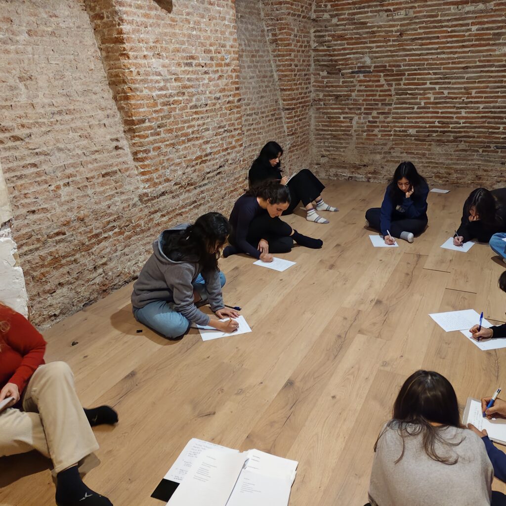 Este taller promueve la reunión entre mujeres y la visibilidad de la poesía de mujeres de la Comunidad de Madrid a través de encuentros. Para ello se focaliza en la poesía y la mediación/promoción lectora y poéticas corporales. A partir de la investigación y la exploración de lenguajes surgen interrogantes, imágenes, movimientos, situaciones que amplían posibilidades en las lecturas.